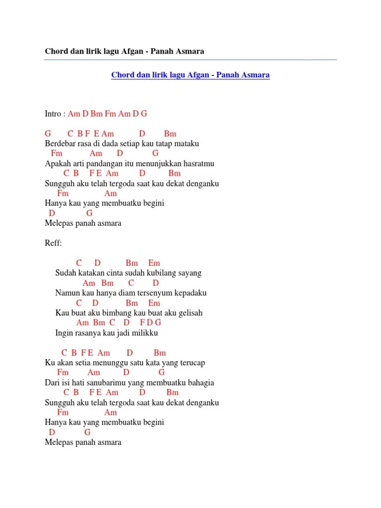 Chord gitar dan lirik lagu asmara yang dipopulerkan oleh setia band.